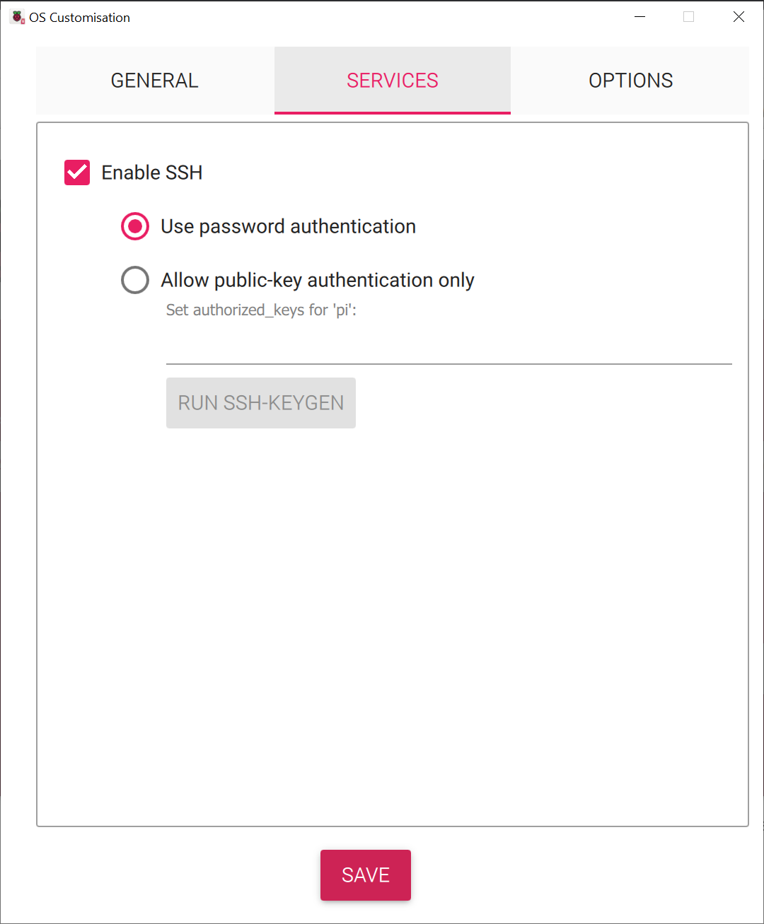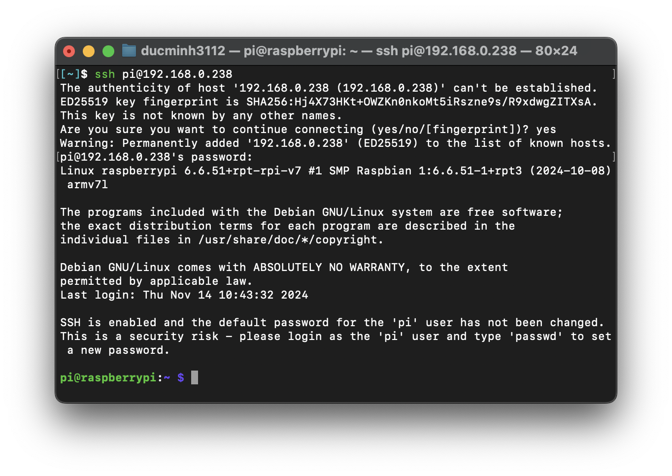 Đặt username và password để dùng SSH