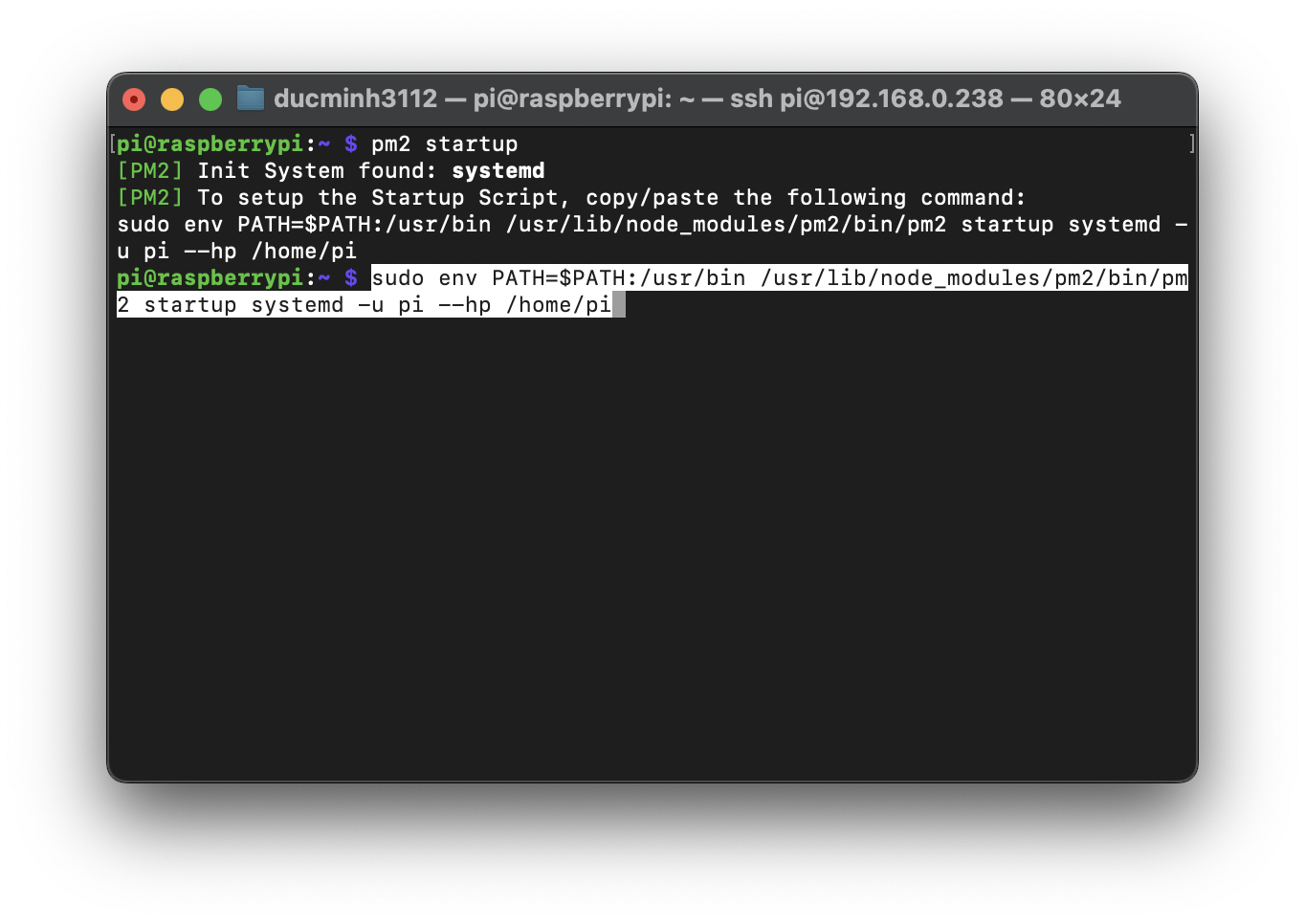 Chạy dòng lệnh pm2 đưa ra để hoàn tất cài đặt